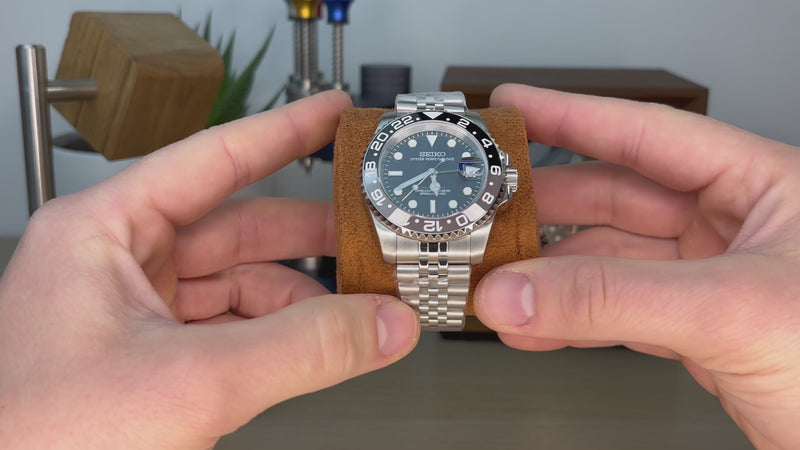 Handcrafted and assembled by our in-house watch experts, the Seiko GMT Mod is driven by the reliable NH34 movement, offering seamless GMT functionality for tracking multiple time zones. Inspired by the iconic GMT design, this mod features the distinctive 24-hour bezel and a bold, legible dial, perfect for international travelers and watch enthusiasts alike. With its durable stainless steel case and versatile look, this watch combines style with practicality for those always on the move.