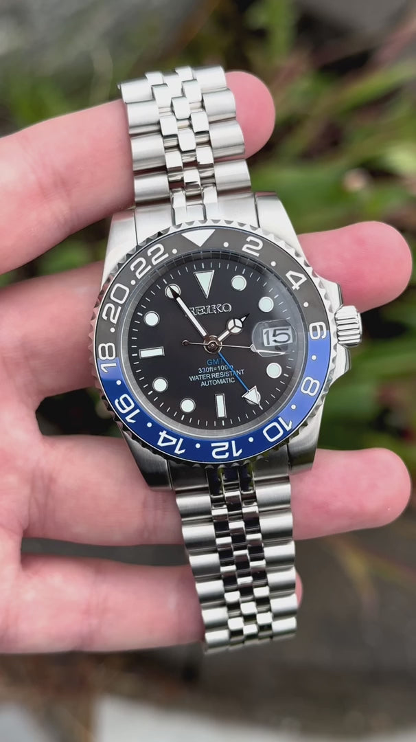 Handcrafted and assembled by our in-house watch experts, the Seiko GMT Mod is driven by the reliable NH34 movement, offering seamless GMT functionality for tracking multiple time zones. Inspired by the iconic GMT design, this mod features the distinctive 24-hour bezel and a bold, legible dial, perfect for international travelers and watch enthusiasts alike. With its durable stainless steel case and versatile look, this watch combines style with practicality for those always on the move.