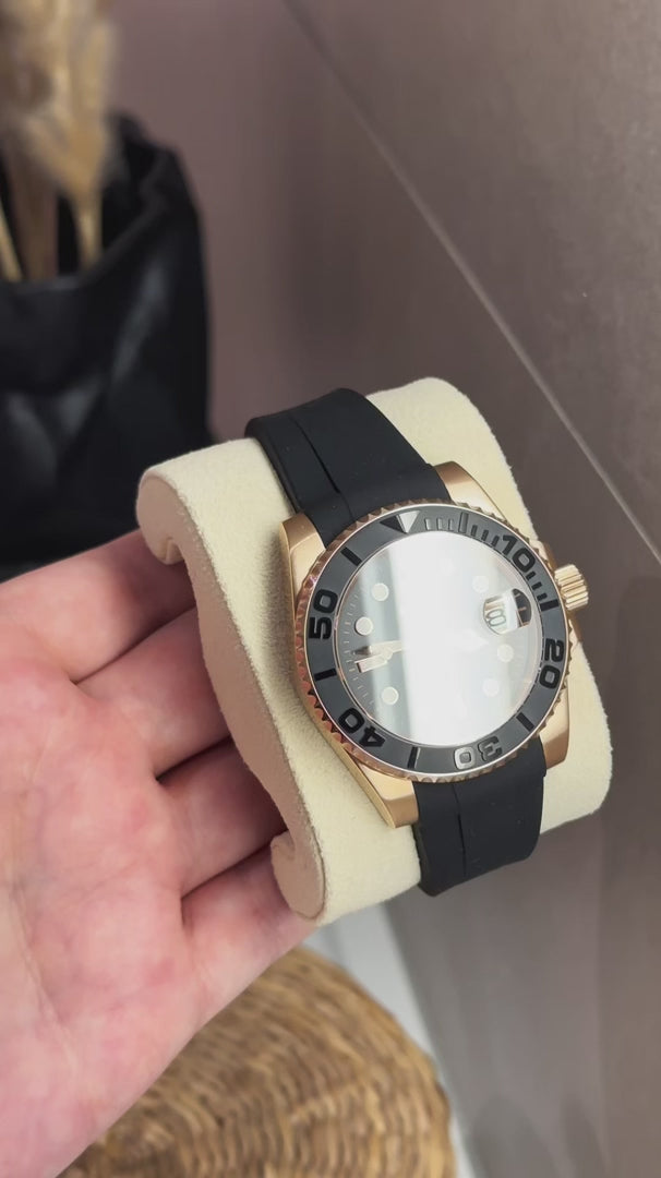 Handcrafted and assembled by our in-house watch experts, the Seiko Yacht-Master Mod is driven by the reliable NH35 automatic movement. Drawing inspiration from the iconic Yacht-Master design, this mod features the signature bi-directional rotating bezel, bold hour markers, and a sporty dial, perfectly balancing luxury and functionality. Paired with a durable rubber strap for maximum comfort and versatility, this watch is the ideal companion for both maritime adventures and everyday elegance.