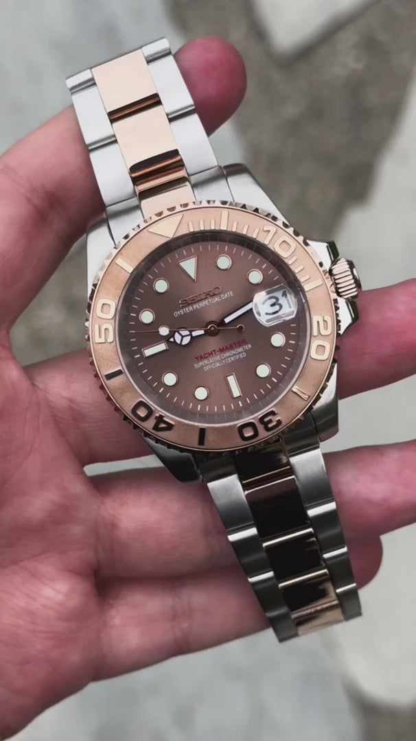 Handcrafted and assembled by our in-house watch experts, the Seiko Yacht-Master Mod is powered by the NH35 automatic movement. Inspired by the iconic Yacht-Master design, this mod features the signature bi-directional rotating bezel, bold hour markers, and sleek, sporty dial, delivering both luxury and functionality. Built with a robust stainless steel case, it combines Seiko’s renowned precision with the timeless, nautical elegance of the Yacht-Master, making it perfect for maritime adventures and everyday wear.